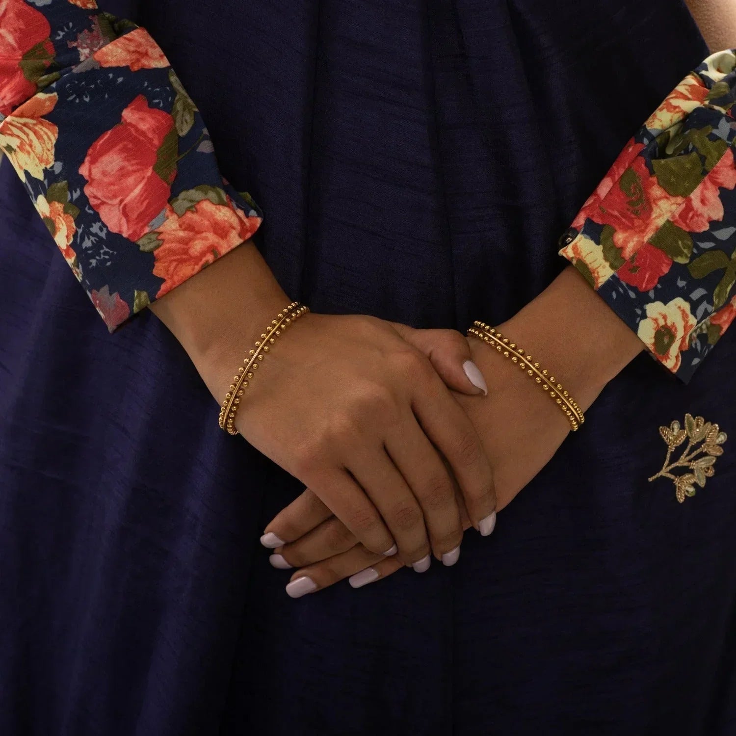 Inspired by the rich tribal culture, this bangle is eclectic and has an earthy feel to it. It is gold plated with oxidized finish to give the definite earthy charm.
