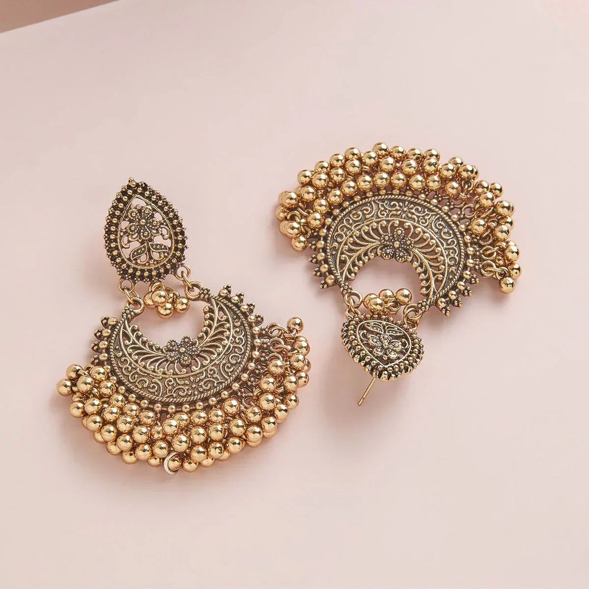 Base Metal: Copper Alloy Stone: NA Earring Weight: 32 Earring Length (cms): 7 Earring Style: Chandbalis Earring Closure Type: Push Back