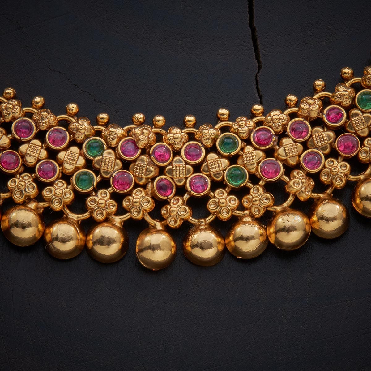 Base Metal: Copper Alloy Stone: Synthetic Stones Product Weight (gms): 44 Earring Weight: 19 Earring Length (cms): 4 Earring Style: Jhumkas Earring Closure Type: Push Back Product Details: Adjustable Thread