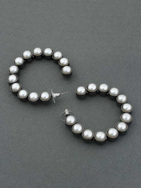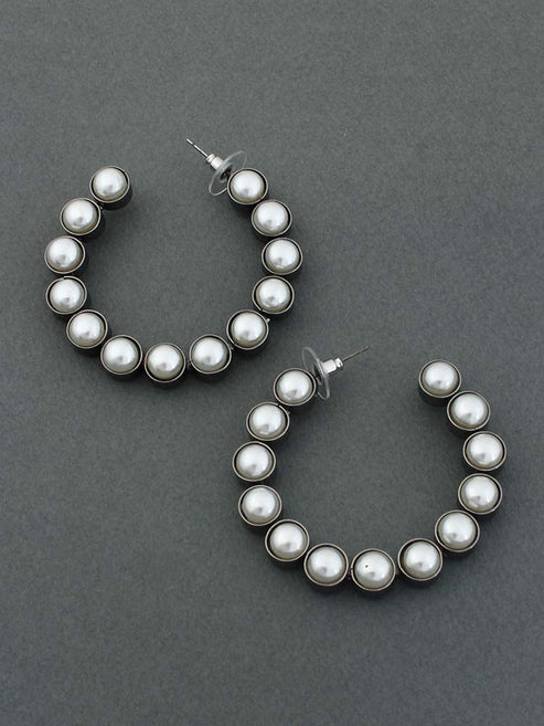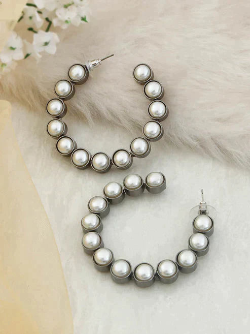 These are a ravishing pair of the classic hoop design. This is a hot favorite this season. The pair has a very chic look and can lift up any outfit. So get your hands on one of the best pearl detailed hoops out there
